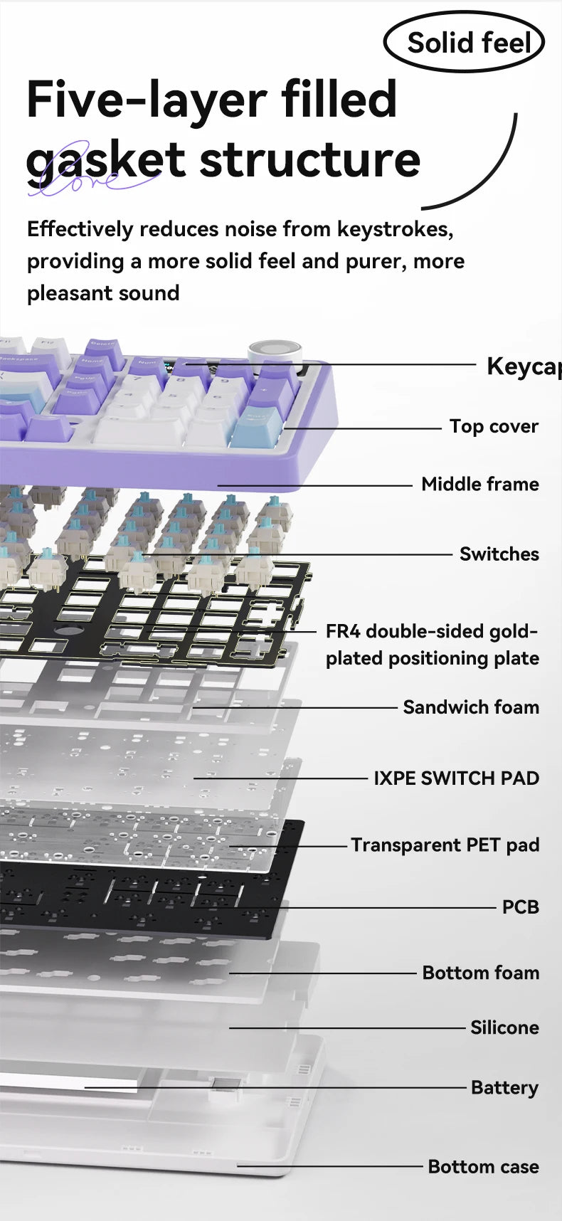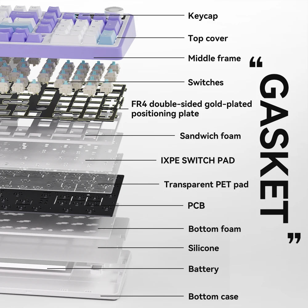 AJAZZ AK980 mechanical keyboard multifunctional knob gasket structure color screen wireless gaming keyboard PC gaming machine ac
