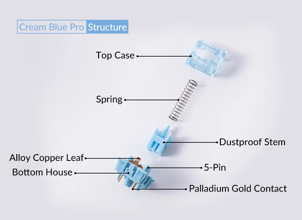 Akko V3 Pro Cream Blue Switch 5 Pin 45gf Tactile Switch With Dustproof Stem Compatible with MX Mechanical Keyboard (45 pcs)